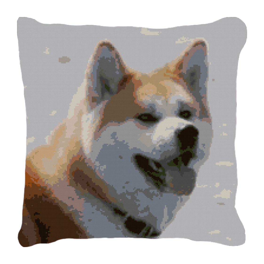 Designated as a national monument in Japan, the Akita is courageous, dignified, and loyal. These dogs were originally used to guard royalty. Affectionate, respectful and amusing, this big bold dog has unwavering loyalty to his owners. A fun pillow to stitch for your sofa! (adapted from a photo by Sevenfatdogs) Thread is optional, does not include finishing materials.