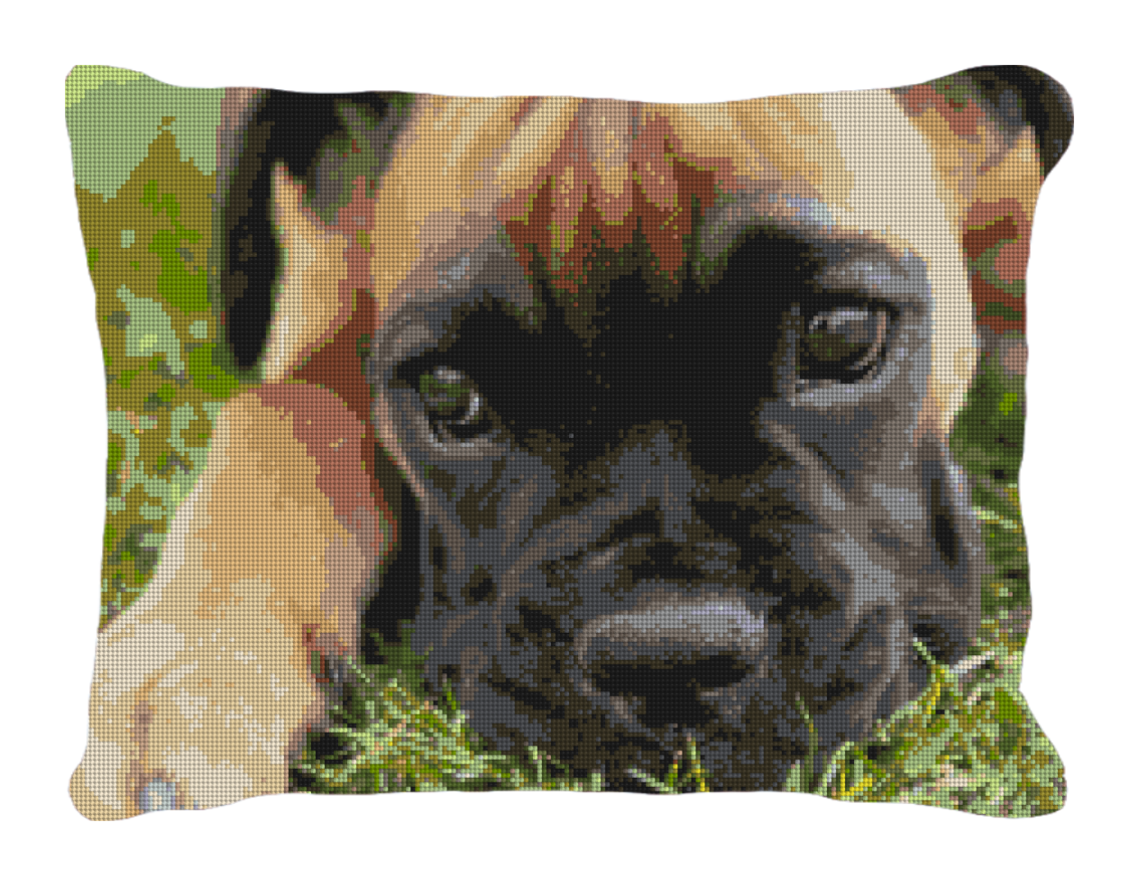 "A face, only a mother could love!" On the contrary, who couldn't love this sweet little Boxer puppy. These fun loving, bright and active Boxers make the best of family pets. They want to be a lap dog, but are happy just being as close to you as possible. Stitch our Boxer Pup needlepoint canvas for your home. (Adapted from a photo by: Pharaoh Hound) (thread is optional, does not include finishing materials)