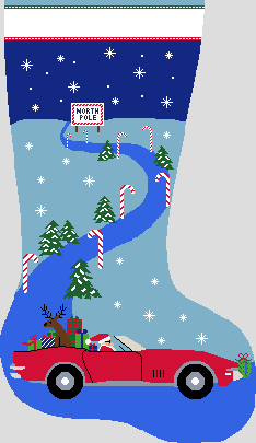 We all know that Santa has a preferred style of transportation for distributing all of those gifts! Give the reindeer a little lift this holiday season, and make those deliveries in style. Stitch this clever holiday stocking for your "Santa Claus", and personalize it with his real name. Create some new memories this Christmas, and capture the modern spirit with this wintertime design. (DMC embroidery floss is optional, does not include finishing materials)