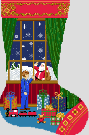 A child's dreams are anything but ordinary when Christmas is upon us. Everything that shines, and sparkles adds an extra special bit of magic to the tree, the stockings, and each wrapped present. Dreaming of seeing Santa would make this the best Christmas ever! Stitch this beautifully nostalgic needlepoint stocking canvas and create a family keepsake to adorn your mantle for years to come. (DMC embroidery floss is optional, does not include finishing materials)