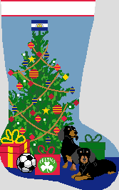 You love sharing the holidays with "mans best friend", so why not give them a prominent spot on your Christmas stocking. These little Dachshunds are friendly, lively, courageous, clever and spunky; and will love helping you discover the bounty that lies inside your stocking. Stitch this needlepoint Dachshund (Weiner Dog) Christmas stocking canvas and create a family heirloom, that will be enjoyed for years to come. The flag and team logo can be customized or removed to your preference. (DMC embroidery floss is optional, does not include finishing materials)