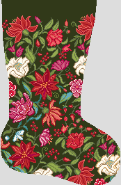 A tapestry of flowers dance with joy! From our needlepoint collection inspired by the natural forms and curvaceous lines of the Art Nouveau movement. A gorgeous new floral design to freshen up your holiday stockings! (DMC embroidery floss is optional, does not include finishing materials) (GG)