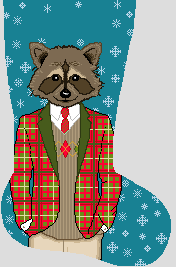 Gentleman Raccoon is a connoisseur and collector, of curiosities and ephemera. Sporting a soft spot for tin toys and bone china teacups; he is always willing to trade a treasure, for silk fibers from the far east. Stitch one canvas or the entire Gentleman Critter Collection; these playful needlepoint stocking personas will add a delightful twist to your holiday festivities! (DMC embroidery floss is optional, does not include finishing materials)