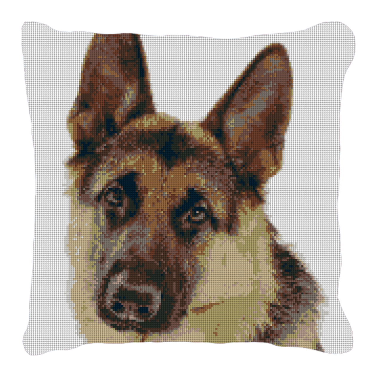 The German shepherd can be endlessly charming. It is always alert and always ready to respond, and this needlepoint kit perfectly captures those unique qualities we all love about them. (thread is optional, does not include finishing materials)