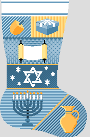 The festival of lights! Play a little game of dreidel, enjoy those special holiday latkes, light the menorah, and decorate for Hanukkah with delight. Fill it with goodies, good will and good cheer, this year stitch a stocking for someone who is especially dear! (DMC embroidery floss is optional, does not include finishing materials)