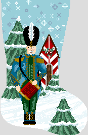 "Our finest gifts we bring . . . pa rum pum pum pum." Timeless, charming and festive! Stitch this needlepoint stocking canvas and create a new family keepsake, which will be enjoyed for many Christmases to come. Please feel free to personalize this stocking with the name of your choice. (DMC embroidery floss is optional, does not include backing or edging)