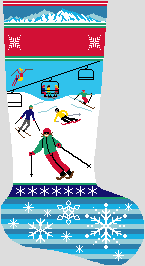 Ahhh . . . the magic of Christmas on the slopes! Nature created this winter wonderland with billions of snowflakes, yet no two are alike. Whatever your skiing preference: enjoying a double black diamond slope, a breezy blue run, or showing off your style under the chair lift. We know you'll enjoy stitching this Christmas stocking canvas for yourself or the skier in your family. A stocking you can personalize, and guarantee . . . no two are alike. (DMC embroidery floss is optional, does not include finishing materials)