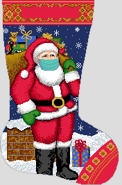Straight from the North Pole, he's chubby, he's plump, he's a right jolly old elf! As Santa is not immune to the many changes that we’ve encountered in the past year, he has assured us that extra safety precautions will be made when delivering your packages this Christmas! Stitch this holiday stocking canvas with a light hearted twist on a traditional holiday theme. Be sure to personalize this stocking canvas, and make it extra special for the person who will find magic and treasures inside. (DMC embroidery floss is optional, does not include finishing materials)Check out our blog post with two additional ornaments to compliment this stocking design: https://www.needlepaint.com/blog/2020/10/01/merry-x-mask-santa-face-mask-stocking-and-ornament-collection/