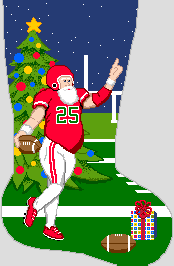 Santa has scored big time this holiday season! No more "armchair quarterback" for him, he's back in the game this season. Please feel free to personalize this design with your players name and jersey number. Now you've found the perfect needlepoint canvas to stitch for the ball player in your family and create those lasting holiday memories! (DMC embroidery floss is optional, does not include finishing materials)