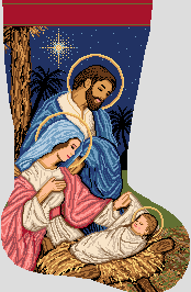 This needlepoint stocking design captures the essence of the Christmas story; featuring Mary, Joseph and the baby Jesus who represent the serenity and beauty of this Holy Night. Use your needlepoint artistry to create a hand crafted masterpiece which will become a cherished holiday keepsake! (DMC thread is optional, does not include finishing materials) (GG)