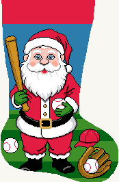 When this jolly fellow is involved, the holiday is sure to be a home run! Needlepoint stitches meet athletic spirit -- yes, Santa's "got game" and ready to add a touch of sporty seasonal fun to your Christmas.