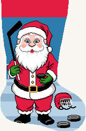 Loving the cold . . . he's lacing up for a holiday hat trick! Needlepoint stitches meet athletic spirit -- yes, Santa's "got game" and ready to add a touch of sporty seasonal fun to your Christmas.