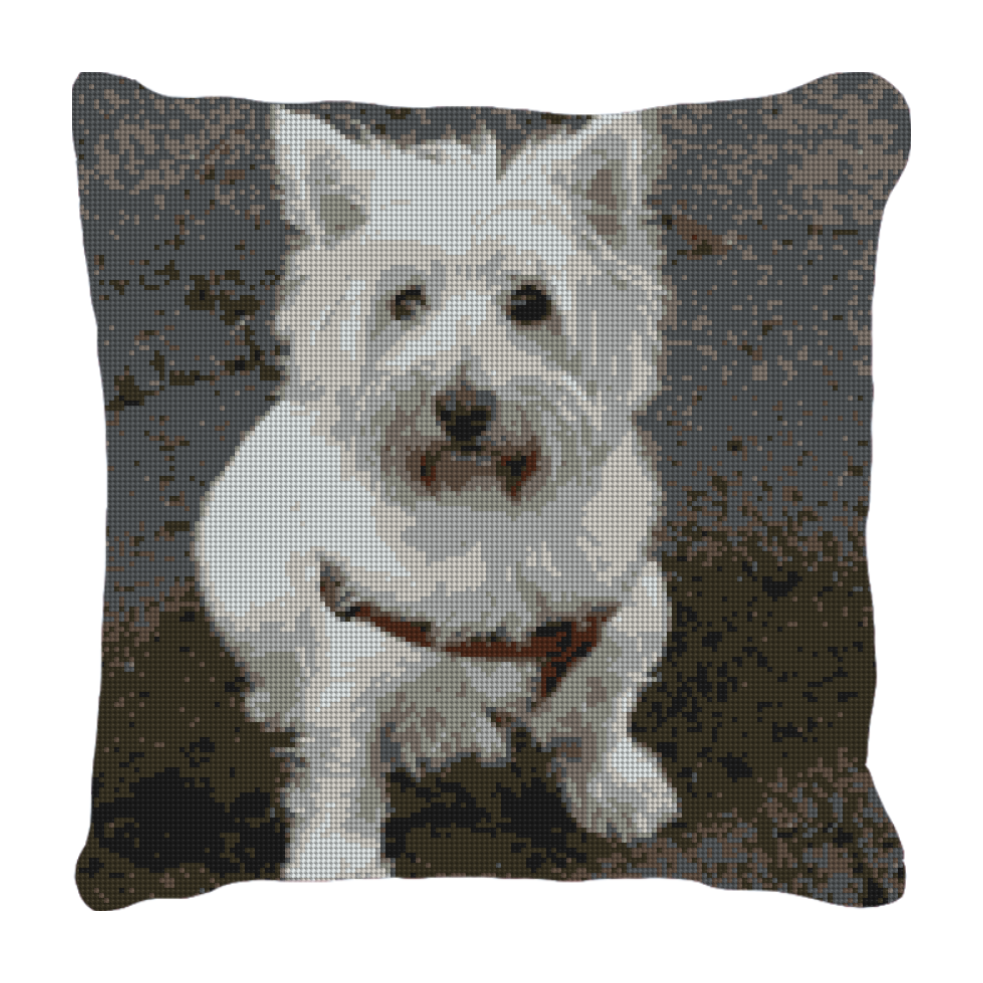 A "big dog" in a "little dog" body! West Highland Terrier's are a popular breed, with enough independence and self assurance; they definitely don't need pampering. Westies have a lively nature, are friendly, and love to make you laugh while they entertain themselves. Stitch our West Highland Terrier needlepoint canvas and add some personality to your living space. (thread is optional, does not include finishing materials)