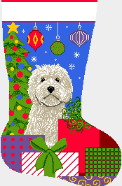 Christmas is all about spending time with those you love, and sharing the day with your beloved white goldendoodle. Stitch this needlepoint stocking canvas featuring your beloved dog, and add a personal touch to your mantle piece. We would be happy to personalize this stocking with the name of your choice. (DMC embroidery floss is optional, does not include finishing materials)